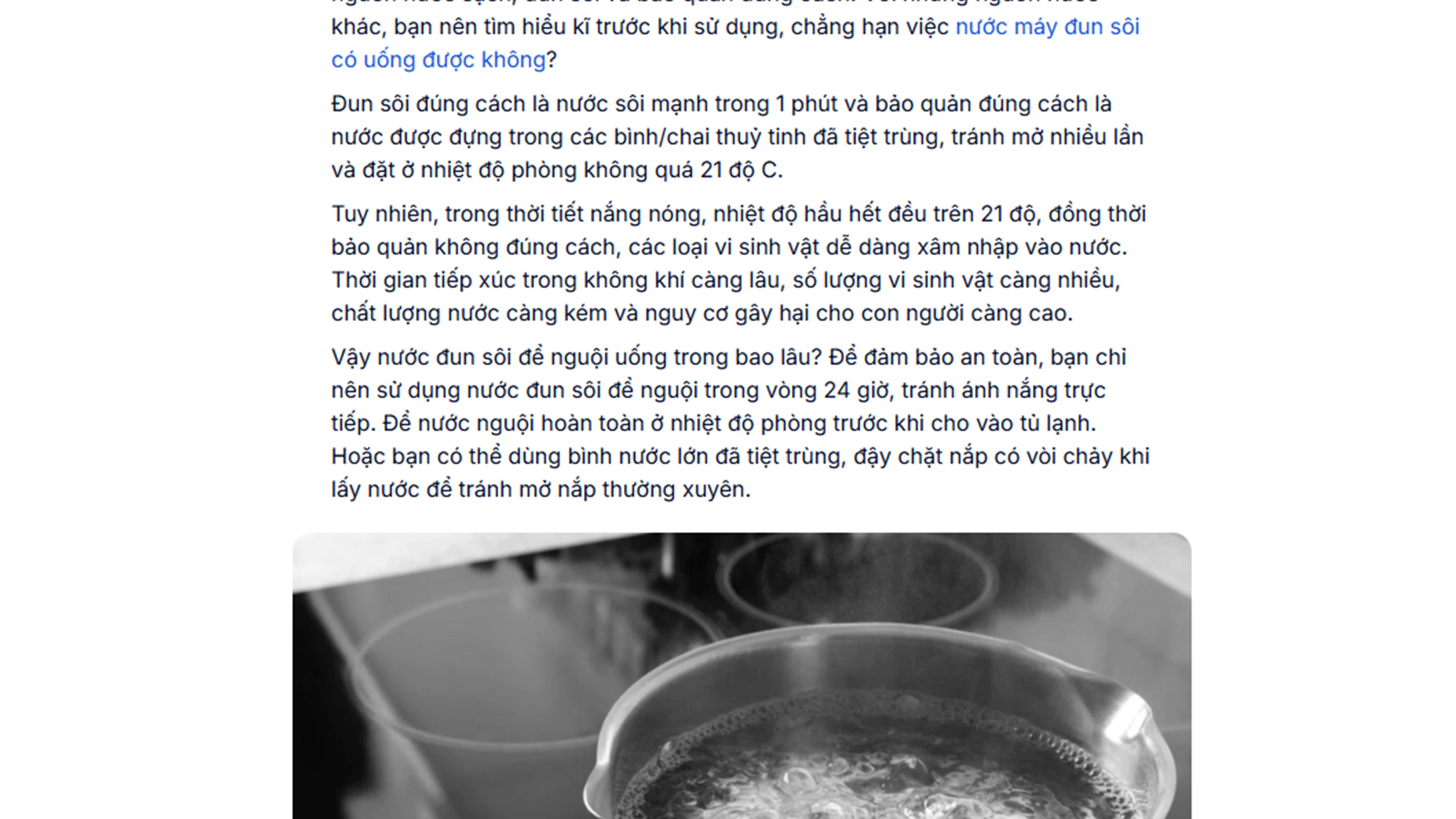 - Nước đun sôi để nguội thì dù sao cũng đã được tiệt trùng phần nào nên có thể hạn chế vi khuẩn phát triển trong vòng 24h (nguồn). Vì thế nên nó vẫn sẽ an toàn hơn.