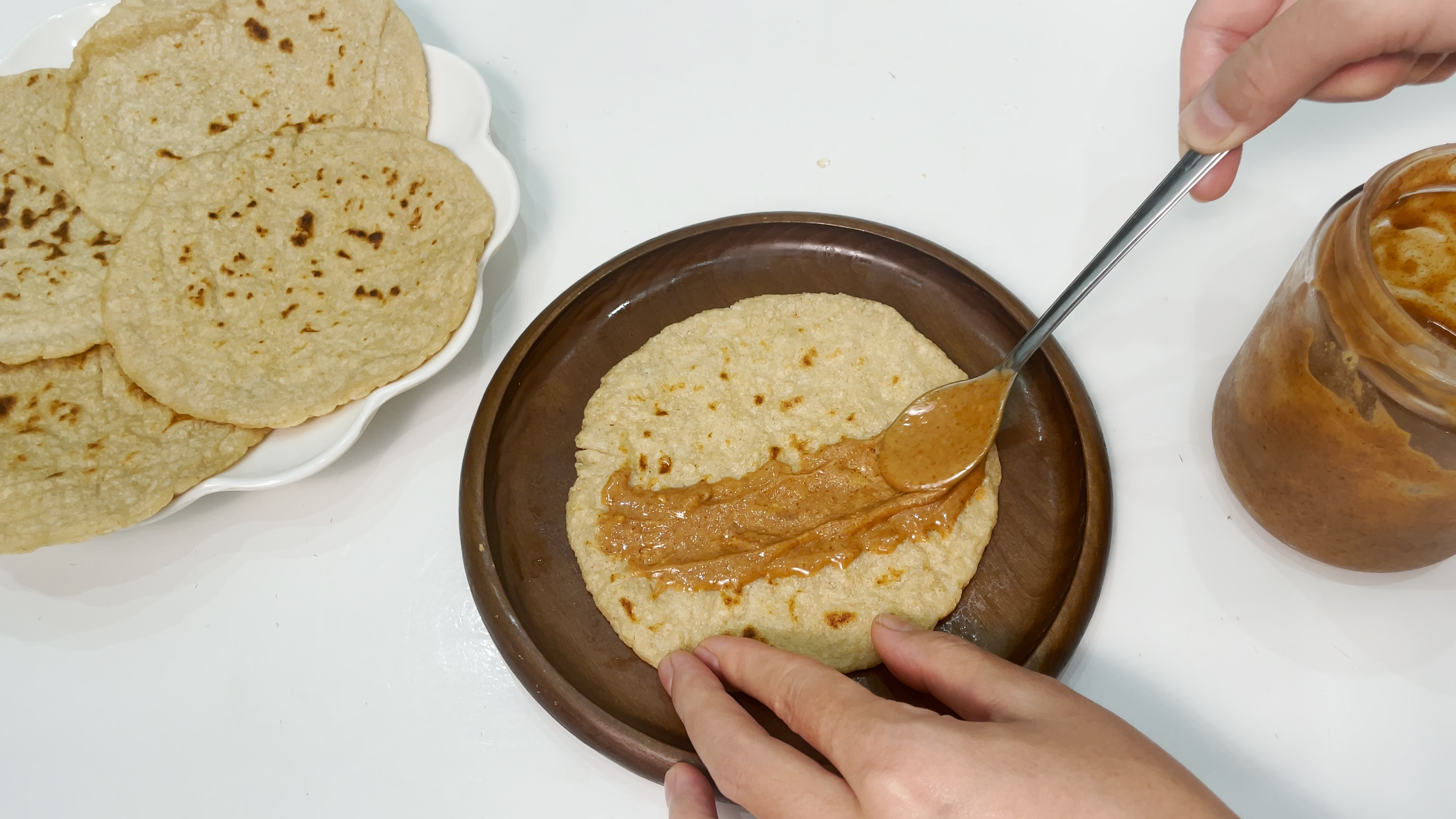 Jung Hạt thường quết thêm một lớp bơ hạt, thêm vài lát chuối rồi cuộn lại. Ngon bất ngờ luôn ấy — mọi người nên thử nhé. Hoặc ăn cùng một ít hạt tuỳ thích và sữa chua cũng rất hợp.