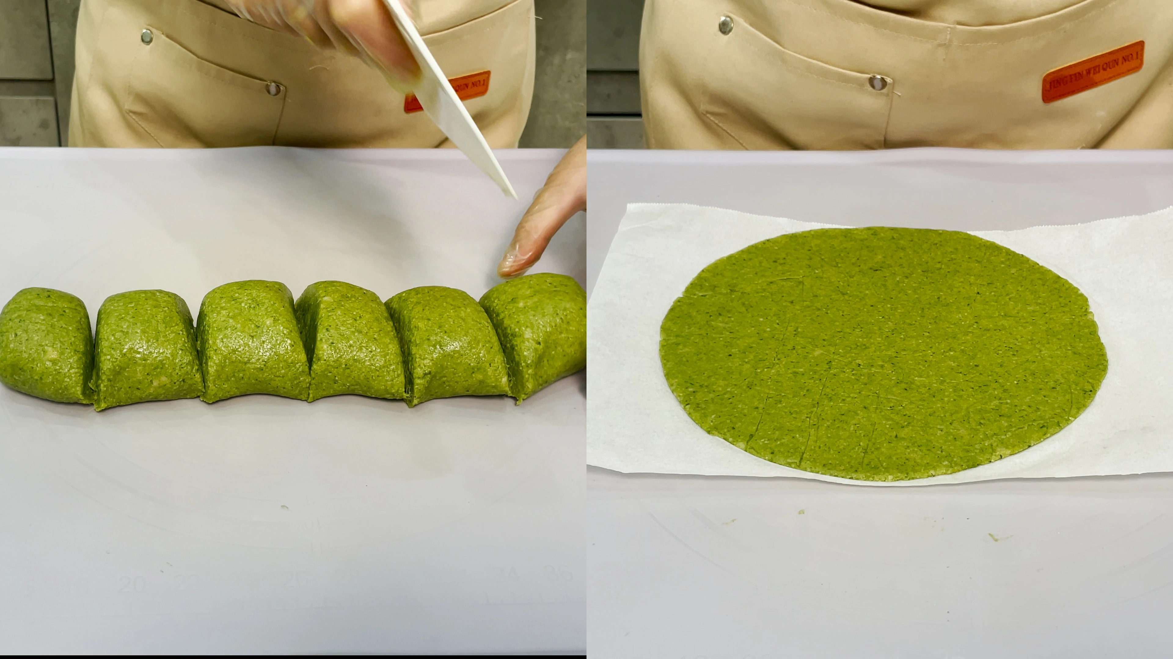 - Nặn bột thành khối dài, chia đều thành 6 phần (hoặc tùy kích cỡ bánh mong muốn).