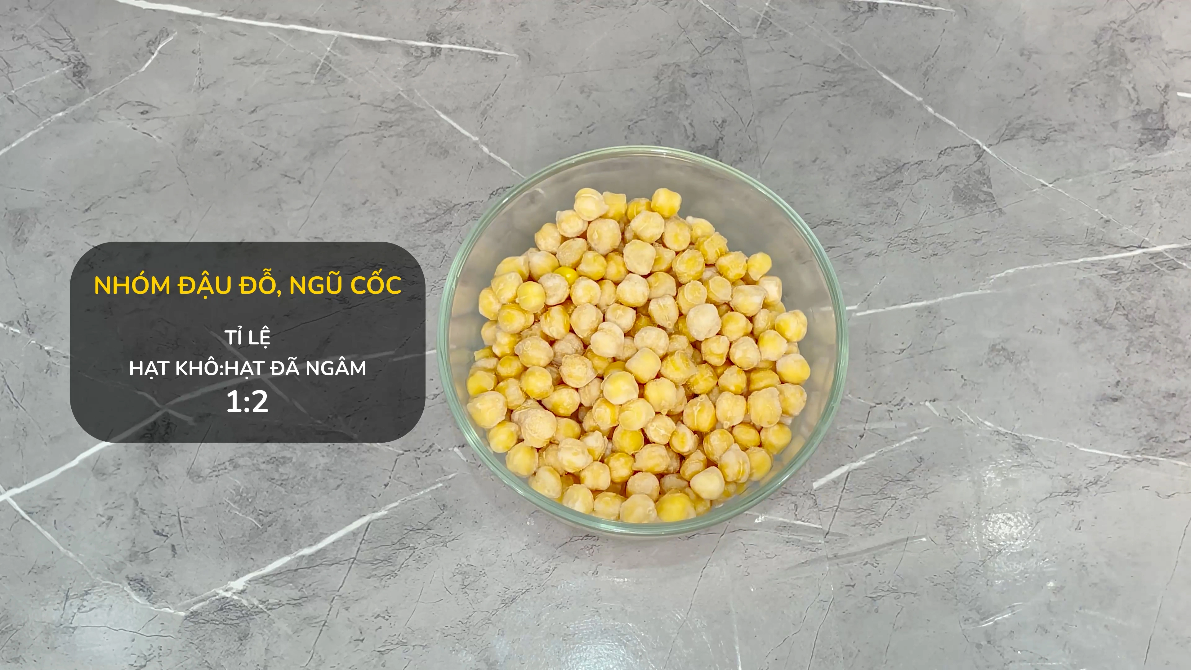 - Nhóm hạt đậu đỗ, ngũ cốc (như đậu gà, đậu xanh, yến mạch…): sau ngâm thường nặng gấp 2 lần