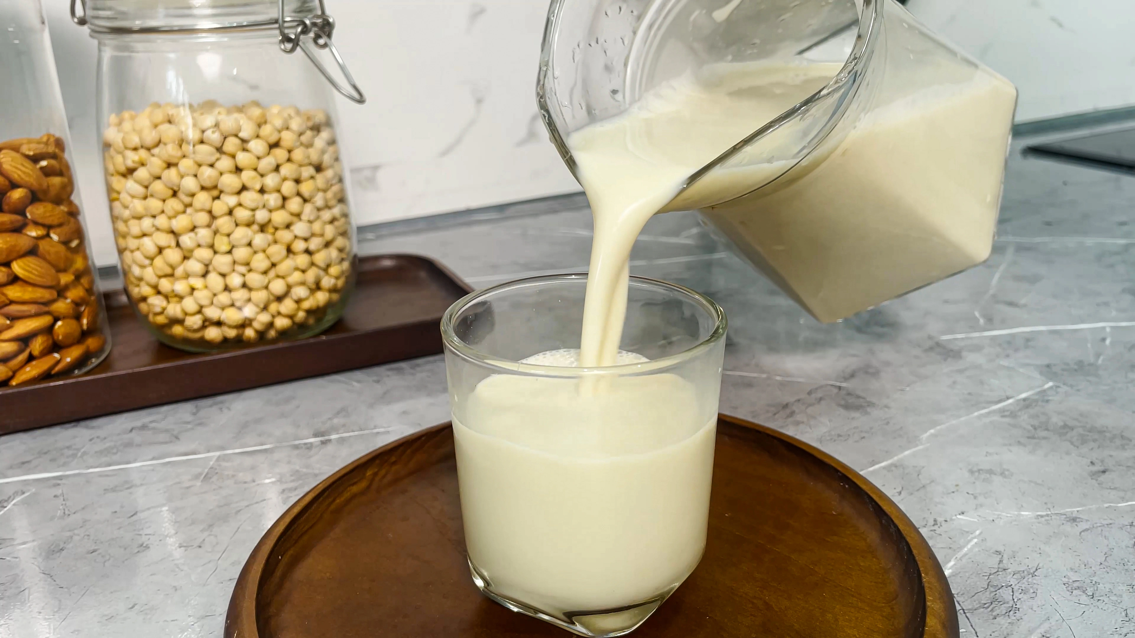 - Bước này sẽ giúp sữa giữ được dinh dưỡng hơn khi thêm các loại hạt giàu chất béo vào xay sau, đồng thời sữa sẽ không bị kết tủa