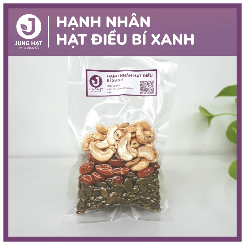 ✨ Cảm ơn bạn đã chọn Gói hạt Hạnh nhân hạt điều bí xanh của Jung Hạt. Chúc bạn có những trải nghiệm tuyệt vời với sản phẩm này!