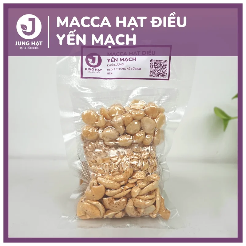 - 😋 Hương vị tuyệt vời: Sự kết hợp giữa macca, hạt điều và yến mạch tạo ra món ăn nhẹ thơm ngon và bổ dưỡng.